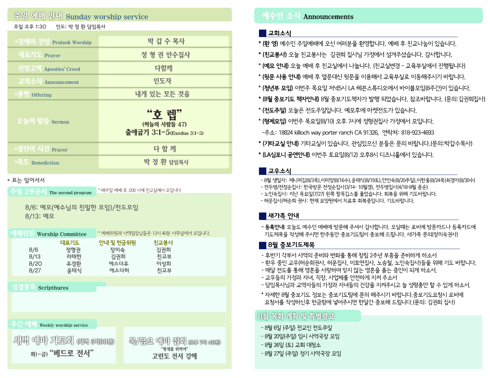 8/6 주보 By 예수인교회 Posted 08/06/2017 In 주보 0 0 예수인교회 Recent PostsChurch of Jesus 16 마태복음(Matthew) 11:11 “예수님이 크게 보시는 사람” Whom Jesus Sees as Great.04/19 주보Church of Jesus 15 누가복음(Luke) 9:57-62 “제자됨의 조건” The Requirements for Discipleship.04/12 주보 Leave a Comment 응답 취소 다음 번 댓글 작성을 위해 이 브라우저에 이름, 이메일, 그리고 웹사이트를 저장합니다.