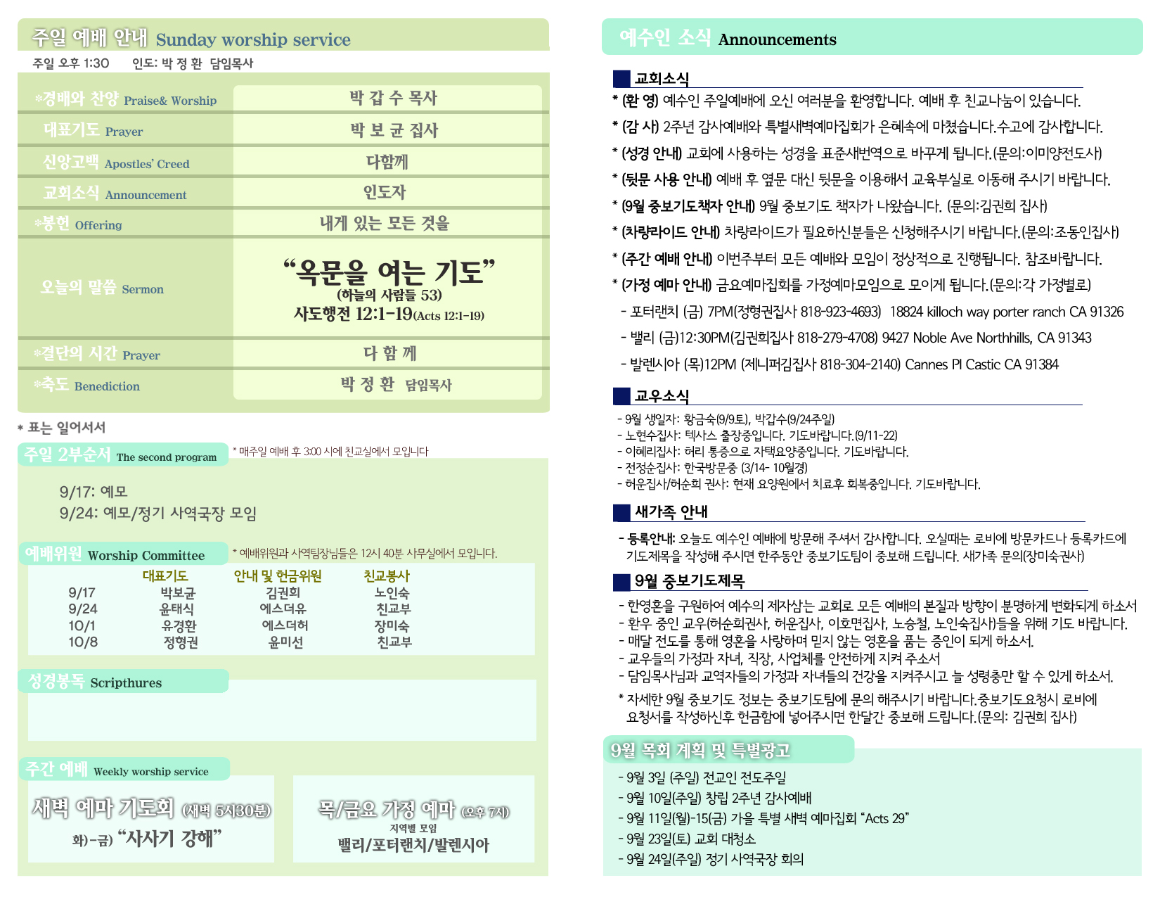 9/17 주보 By 예수인교회 Posted 09/17/2017 In 주보 0 0 예수인교회 Recent Posts0426 주보Church of Jesus 16 마태복음(Matthew) 11:11 “예수님이 크게 보시는 사람” Whom Jesus Sees as Great.04/19 주보Church of Jesus 15 누가복음(Luke) 9:57-62 “제자됨의 조건” The Requirements for Discipleship. Leave a Comment 응답 취소 다음 번 댓글 작성을 위해 이 브라우저에 이름, 이메일, 그리고 웹사이트를 저장합니다.