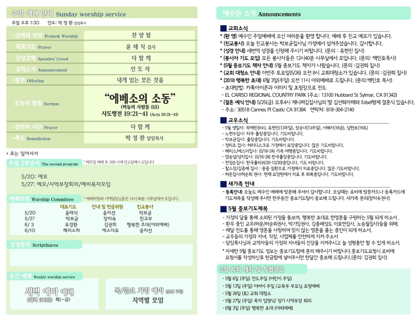 5/20 주보 By 예수인교회 Posted 05/20/2018 In 주보 0 0 예수인교회 Recent PostsChurch of Jesus 16 마태복음(Matthew) 11:11 “예수님이 크게 보시는 사람” Whom Jesus Sees as Great.04/19 주보Church of Jesus 15 누가복음(Luke) 9:57-62 “제자됨의 조건” The Requirements for Discipleship.04/12 주보 Leave a Comment 응답 취소 다음 번 댓글 작성을 위해 이 브라우저에 이름, 이메일, 그리고 웹사이트를 저장합니다.