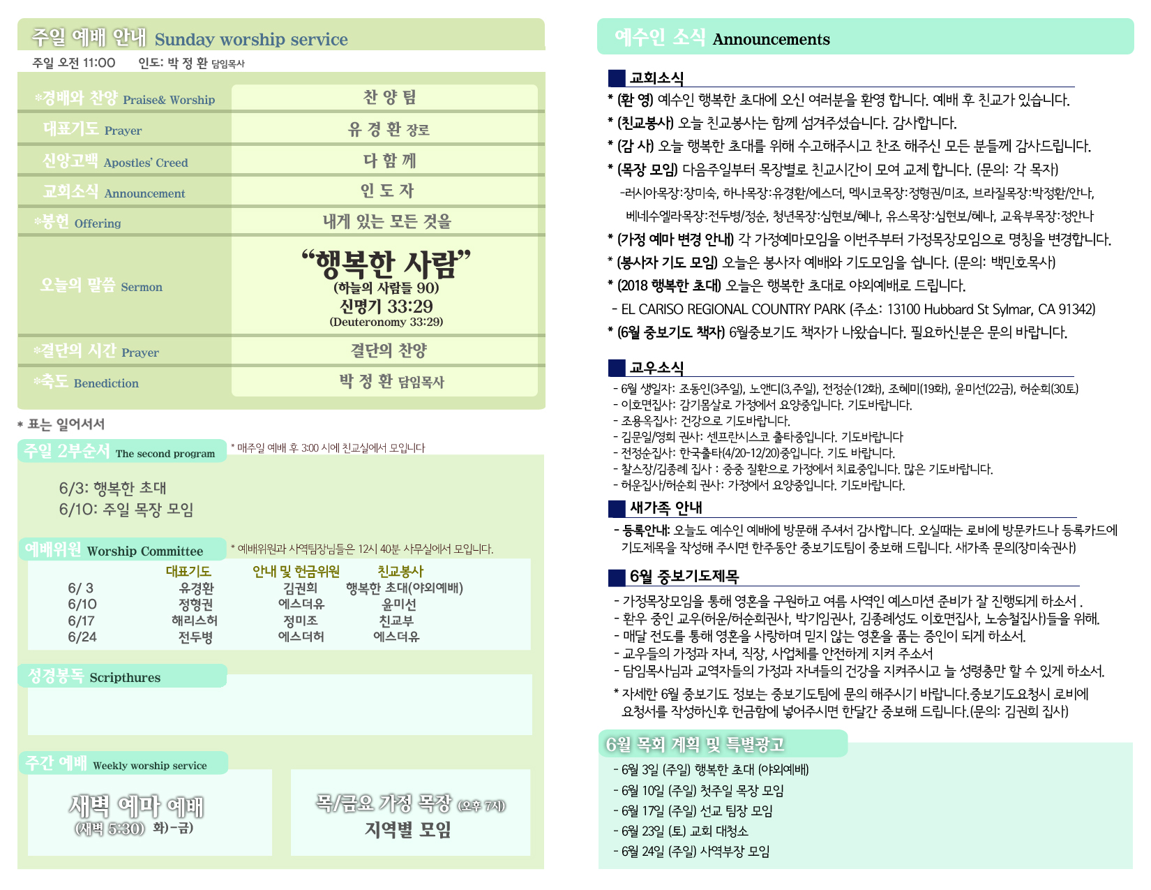 • 예배안내