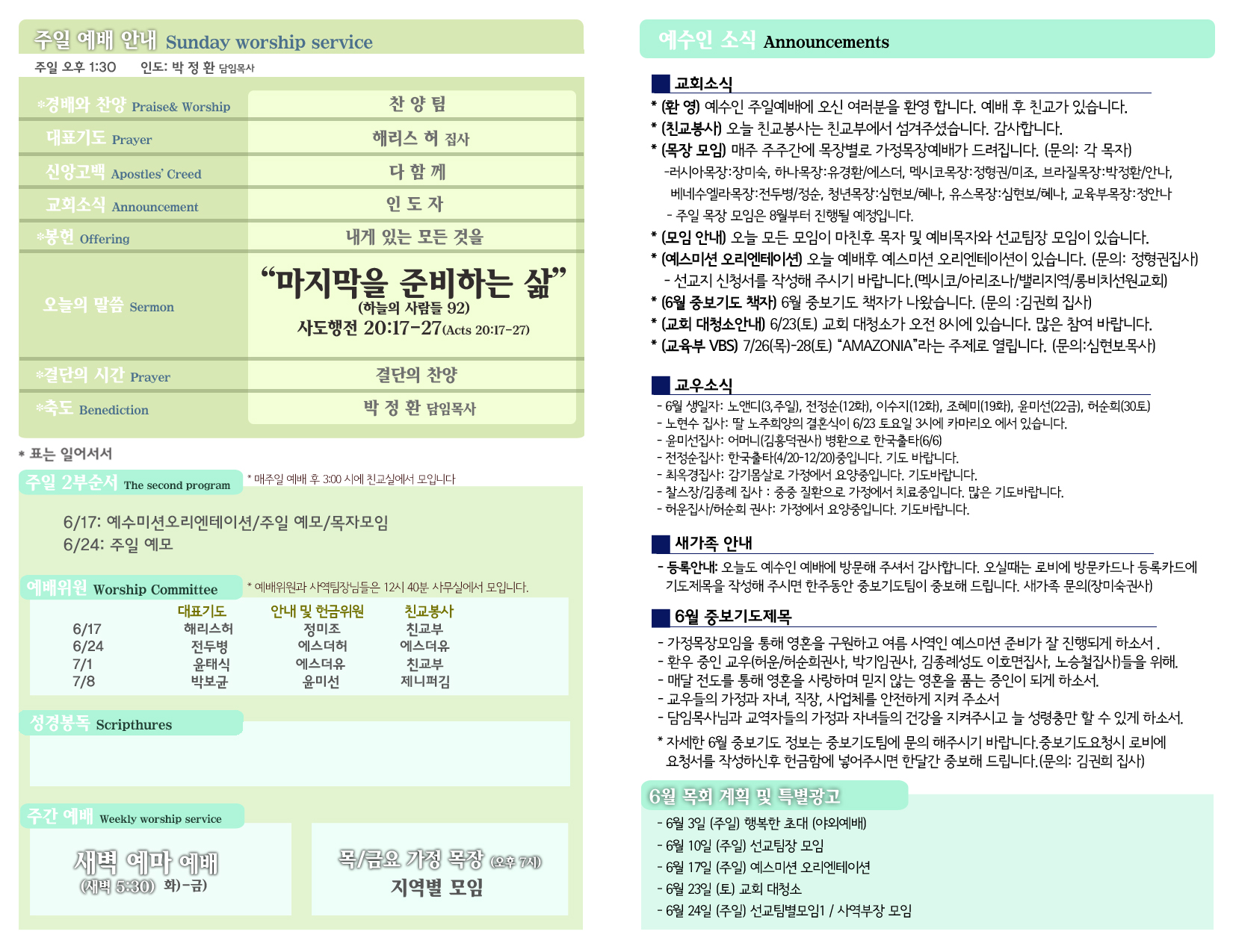 <6/17 하늘의 사람들92(사도행전 20:17-27)“마지막을 준비하는 삶”>주일설교