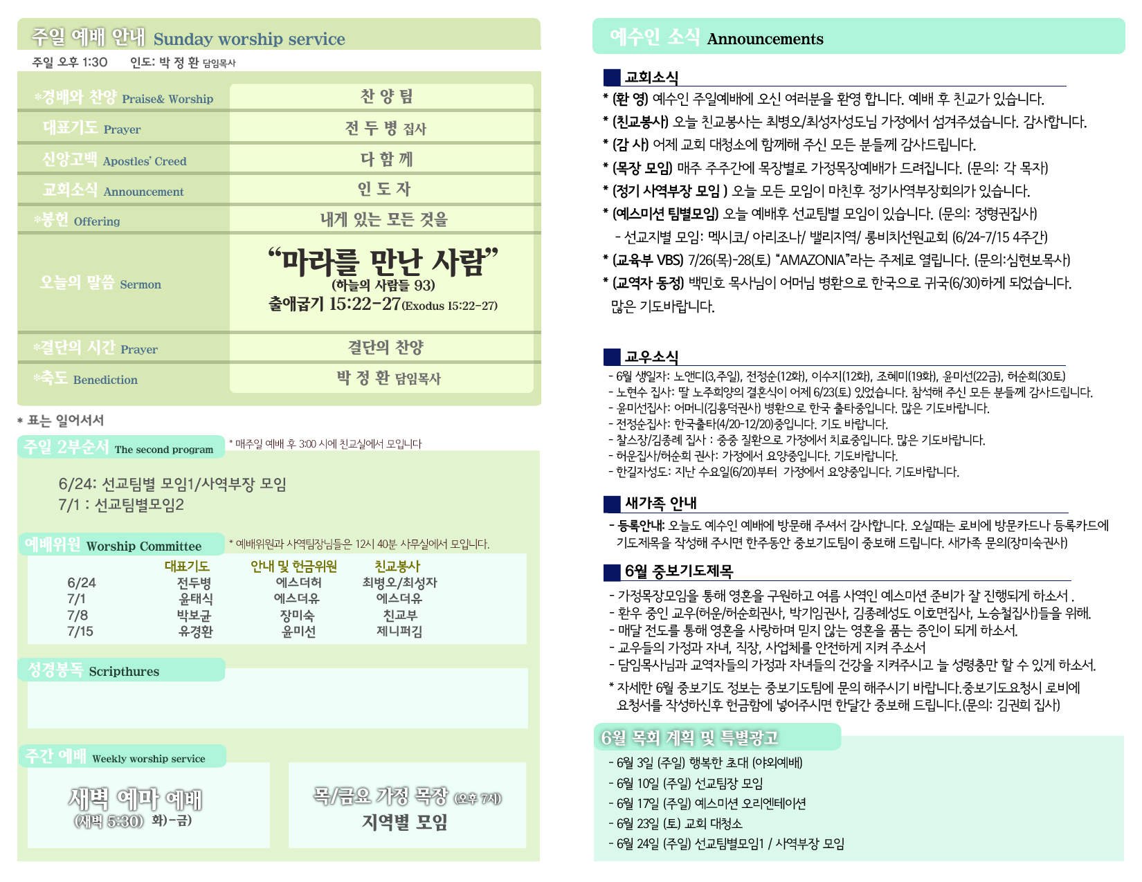 6/24 주보 By 예수인교회 Posted 06/24/2018 In 주보 0 0 예수인교회 Recent PostsChurch of Jesus 16 마태복음(Matthew) 11:11 “예수님이 크게 보시는 사람” Whom Jesus Sees as Great.04/19 주보Church of Jesus 15 누가복음(Luke) 9:57-62 “제자됨의 조건” The Requirements for Discipleship.04/12 주보 Leave a Comment 응답 취소 다음 번 댓글 작성을 위해 이 브라우저에 이름, 이메일, 그리고 웹사이트를 저장합니다.