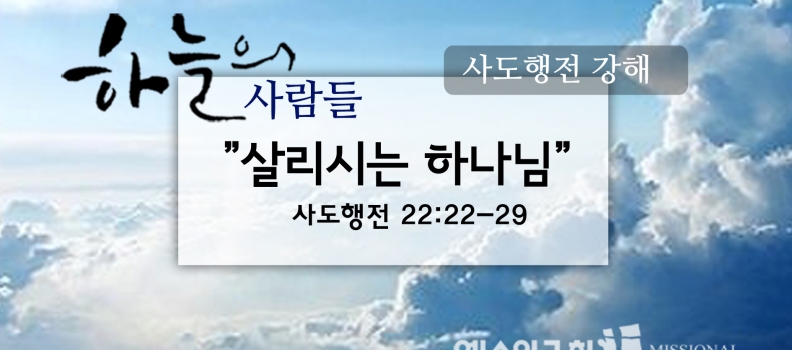 <<8/19 하늘의사람들100(행22:22-29)“살리시는 하나님”>> 사람들이바울의 말을 여기까지 듣고 있다가 “이런 자는 없애 버려라. 살려 두면 안 된다” 하고 소리를 질렀다. 그리고 그들은 고함을 치며, 옷을 벗어 던지며,공중에 먼지를 날렸다. 그 때에 천부장이바울을 병영 안으로 끌어들이라고 [...]