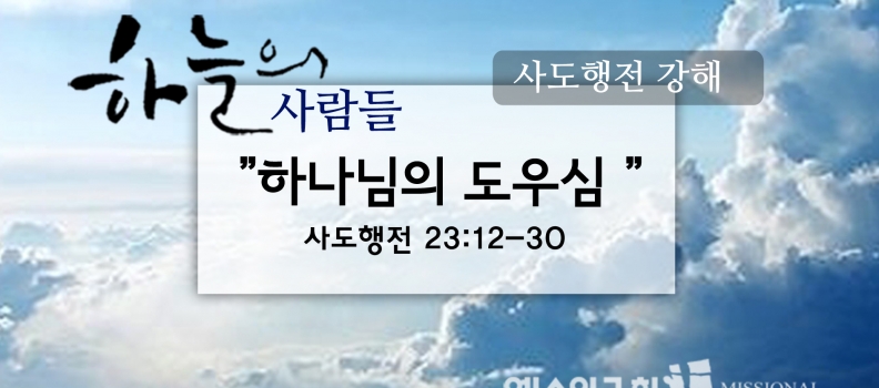 <9/9 하늘의사람들103(행 23:12-30)“하나님의 도우심”> 날이 새니, 유대 사람들이 모의하여,바울을 죽이기 전에는 먹지도 마시지도 않겠다고 맹세하였다. 이 모의에 가담한 사람은 마흔 명이 넘었다. 그들이 대제사장들과 장로들에게로 가서 말하였다. “우리는바울을 죽이기 전에는 아무 것도 입에 대지 않기로 굳게 [...]