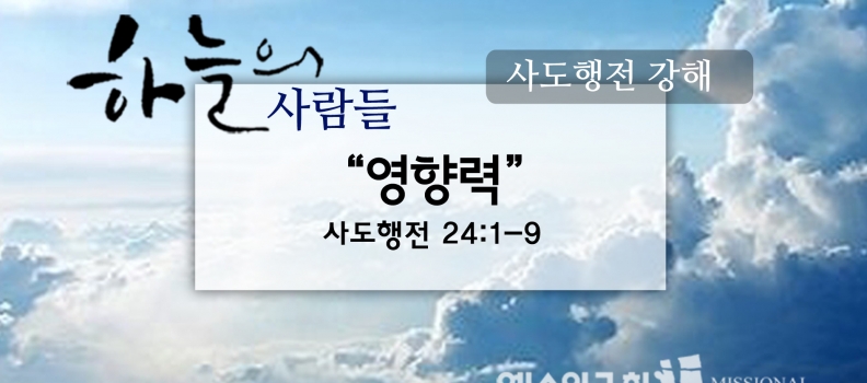 <9/23하늘의사람들105(행 24:1-9)“영향력”> 1. 닷새 뒤에, 대제사장 아나니아가 몇몇 장로와 더둘로라는 변호사와 함께 내려와서, 총독에게 바울을 고소하였다. 2. 바울을 불러내니, 더둘로가 고발하여 말하였다. “벨릭스 총독님, 우리는 총독님의 덕분으로 크게 평안을 누리고 있습니다. 그리고 각하의 선견지명의 [...]
