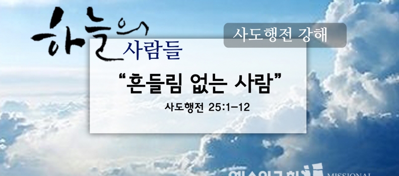 <10/28 하늘의사람들110(행 25:1-12)“흔들림없는 사람”> 베스도가 부임한 지 사흘 뒤에, 가이사랴에서 예루살렘으로 올라가니, 대제사장들과 유대 사람의 지도자들이 그에게 바울을 고발하였다. 그들은 그에게 줄곧 졸랐다. 그들은 그에게 제발 바울을 예루살렘으로 불러 올리라고 간청하였다. 그들은 길에 사람을 매복시켰다가, 바울을 [...]