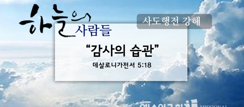 0 0 By 예수인교회 In 주일설교Posted 11/11/2018<11/11 하늘의사람들112(살전 5:18)“감사의 습관”><11/11 하늘의사람들112(살전 5:18)“감사의 습관”> 살전 5:18 모든 일에 감사하십시오. 이것이 그리스도 예수 안에서 여러분에게 바라시는 하나님의 뜻입니다. READ MORE