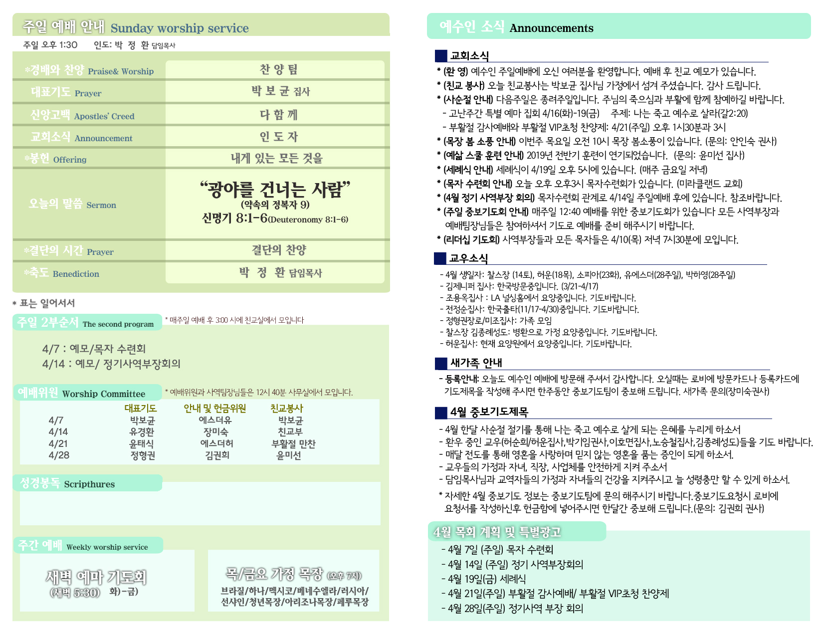4/7 주보 By 예수인교회 Posted 04/07/2019 In 주보 0 0 예수인교회 Recent PostsChurch of Jesus 16 마태복음(Matthew) 11:11 “예수님이 크게 보시는 사람” Whom Jesus Sees as Great.04/19 주보Church of Jesus 15 누가복음(Luke) 9:57-62 “제자됨의 조건” The Requirements for Discipleship.04/12 주보 Leave a Comment 응답 취소 다음 번 댓글 작성을 위해 이 브라우저에 이름, 이메일, 그리고 웹사이트를 저장합니다.