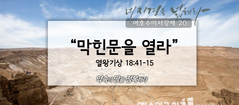 <6/23약속의 땅을 정복하라20(왕상18:41-45)“막힌문을열라” 41. 엘리야가 아합에게 말하였다. “빗소리가 크게 들리니, 이제는 올라가셔서, 음식을 드십시오.” 42. 아합이 올라가서, 음식을 먹었다. 엘리야는 갈멜 산 꼭대기로 올라가서, 땅을 바라보며 몸을 굽히고, 그의 얼굴을 무릎 사이에 넣었다 [...]