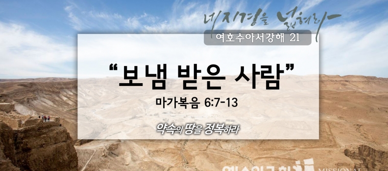 <6/30약속의 땅을 정복하라21(막6:7-13)“보냄받은사람”> 그리고 열두 제자를 가까이 부르셔서, 그들을 둘씩 둘씩 보내시며, 그들에게 악한 귀신을 억누르는 권능을 주셨다. 그리고 그들에게 명하시기를, 길을 떠날 때에는, 지팡이 하나 밖에는 아무것도 가지고 가지 말고, 빵이나 자루도 지니지 말고, 전대에 동전도 넣어 가지 [...]