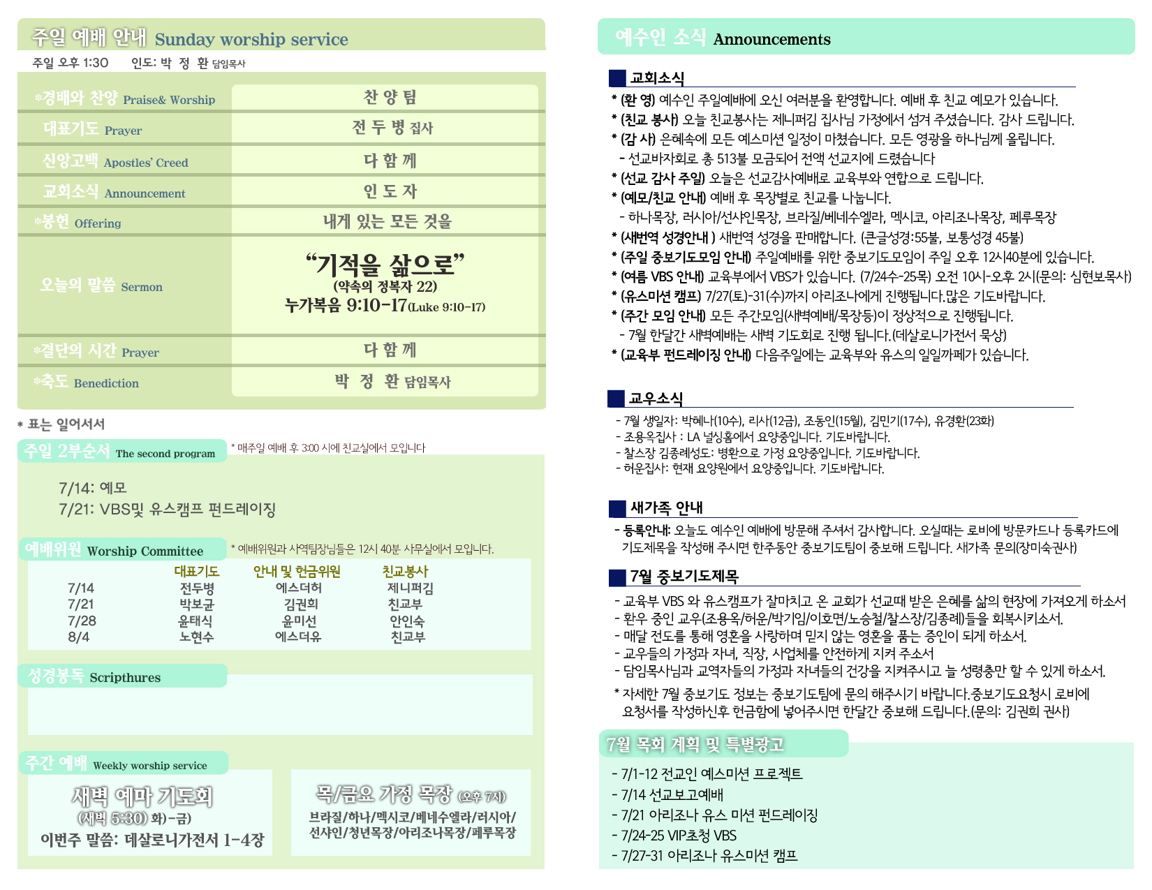 7/14 주보 By 예수인교회 Posted 07/14/2019 In 주보 1 0 예수인교회 Recent PostsChurch of Jesus 16 마태복음(Matthew) 11:11 “예수님이 크게 보시는 사람” Whom Jesus Sees as Great.04/19 주보Church of Jesus 15 누가복음(Luke) 9:57-62 “제자됨의 조건” The Requirements for Discipleship.04/12 주보 Leave a Comment 응답 취소 다음 번 댓글 작성을 위해 이 브라우저에 이름, 이메일, 그리고 웹사이트를 저장합니다.