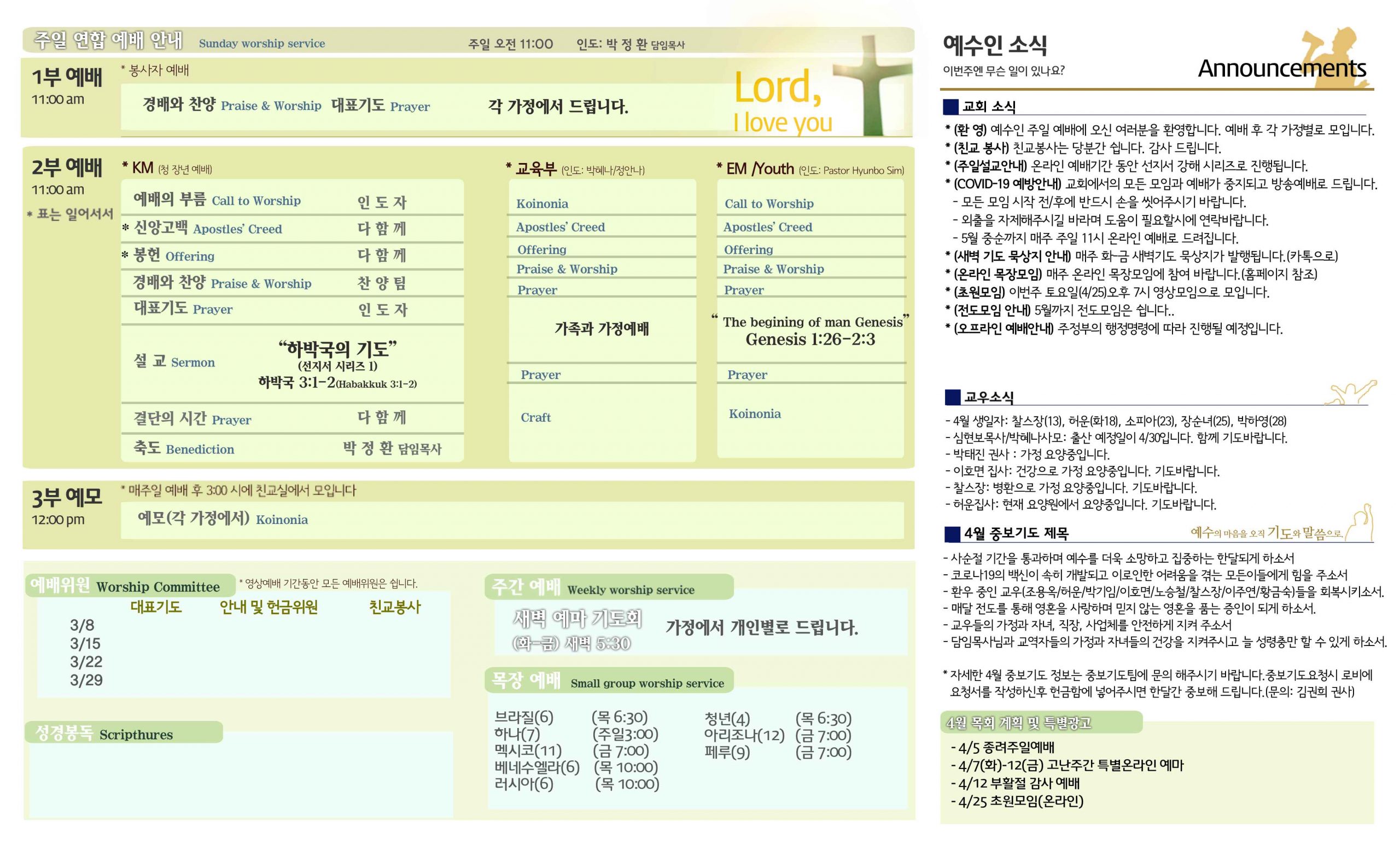 4/19 주보 By 예수인교회 Posted 04/19/2020 In 주보 0 0 예수인교회 Recent PostsChurch of Jesus 16 마태복음(Matthew) 11:11 “예수님이 크게 보시는 사람” Whom Jesus Sees as Great.04/19 주보Church of Jesus 15 누가복음(Luke) 9:57-62 “제자됨의 조건” The Requirements for Discipleship.04/12 주보 Leave a Comment 응답 취소 다음 번 댓글 작성을 위해 이 브라우저에 이름, 이메일, 그리고 웹사이트를 저장합니다.