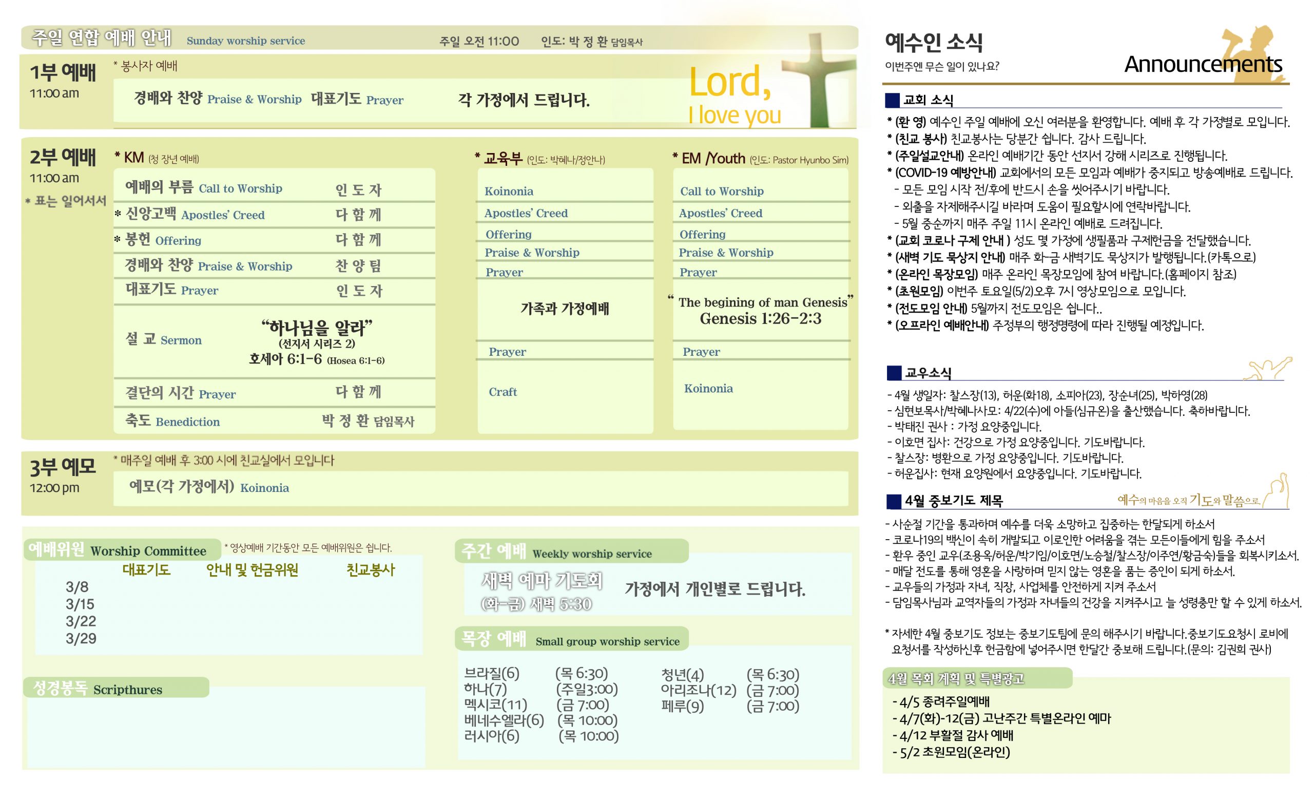 4/26 주보 By 예수인교회 Posted 04/26/2020 In 주보 0 0 예수인교회 Recent PostsChurch of Jesus 16 마태복음(Matthew) 11:11 “예수님이 크게 보시는 사람” Whom Jesus Sees as Great.04/19 주보Church of Jesus 15 누가복음(Luke) 9:57-62 “제자됨의 조건” The Requirements for Discipleship.04/12 주보 Leave a Comment 응답 취소 다음 번 댓글 작성을 위해 이 브라우저에 이름, 이메일, 그리고 웹사이트를 저장합니다.