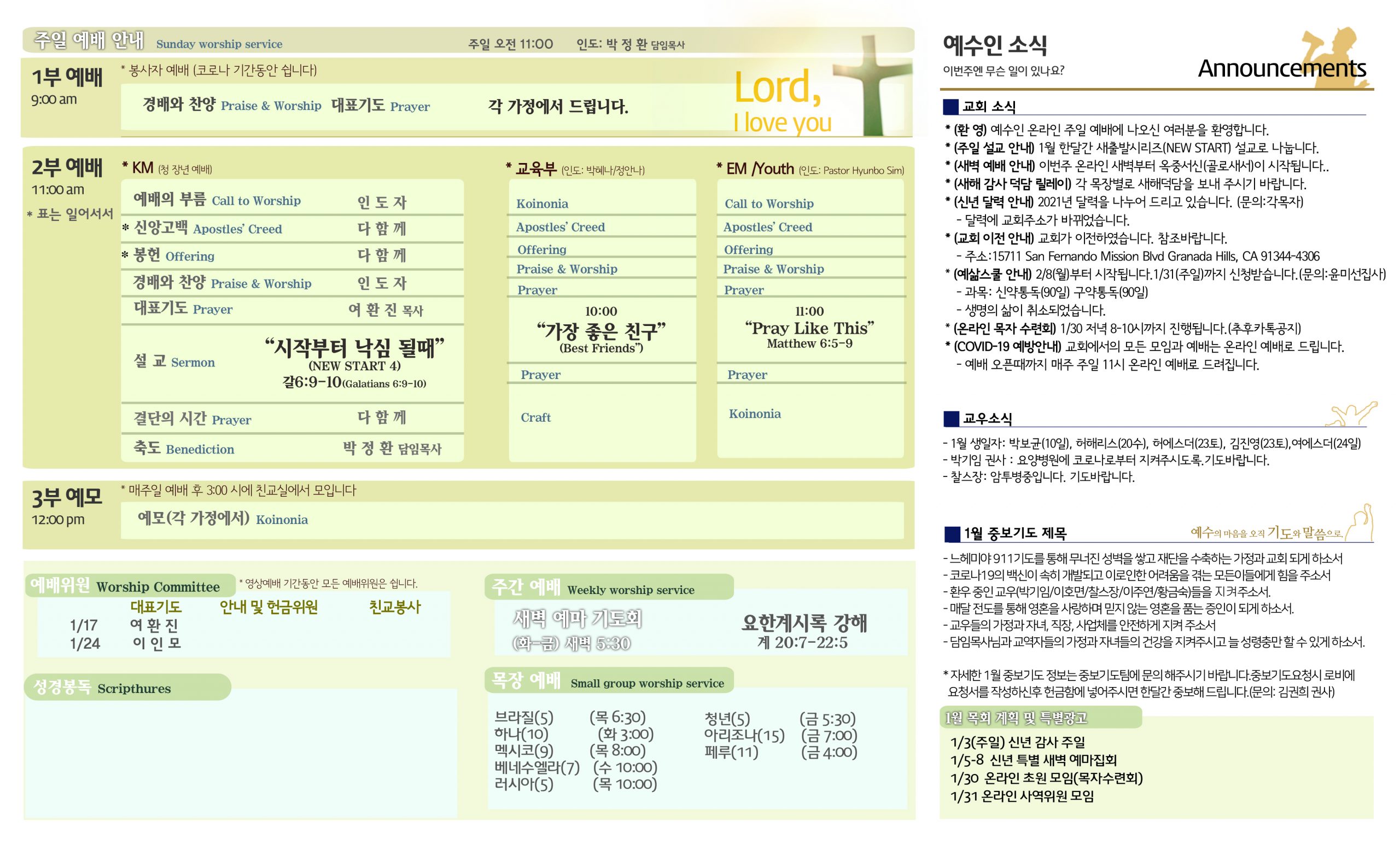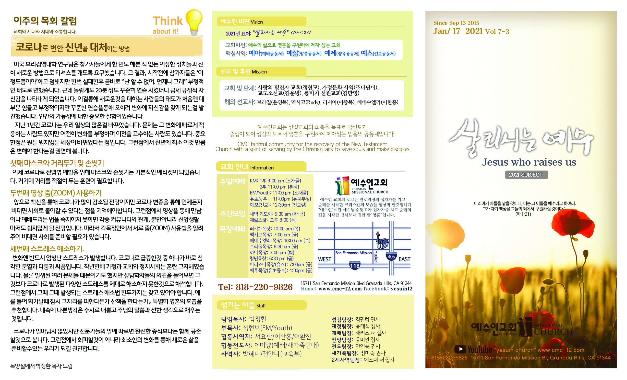 1/17 주보 By 예수인교회 Posted 01/17/2021 In 주보 0 0 예수인교회 Recent PostsChurch of Jesus 16 마태복음(Matthew) 11:11 “예수님이 크게 보시는 사람” Whom Jesus Sees as Great.04/19 주보Church of Jesus 15 누가복음(Luke) 9:57-62 “제자됨의 조건” The Requirements for Discipleship.04/12 주보 Leave a Comment 응답 취소 다음 번 댓글 작성을 위해 이 브라우저에 이름, 이메일, 그리고 웹사이트를 저장합니다.
