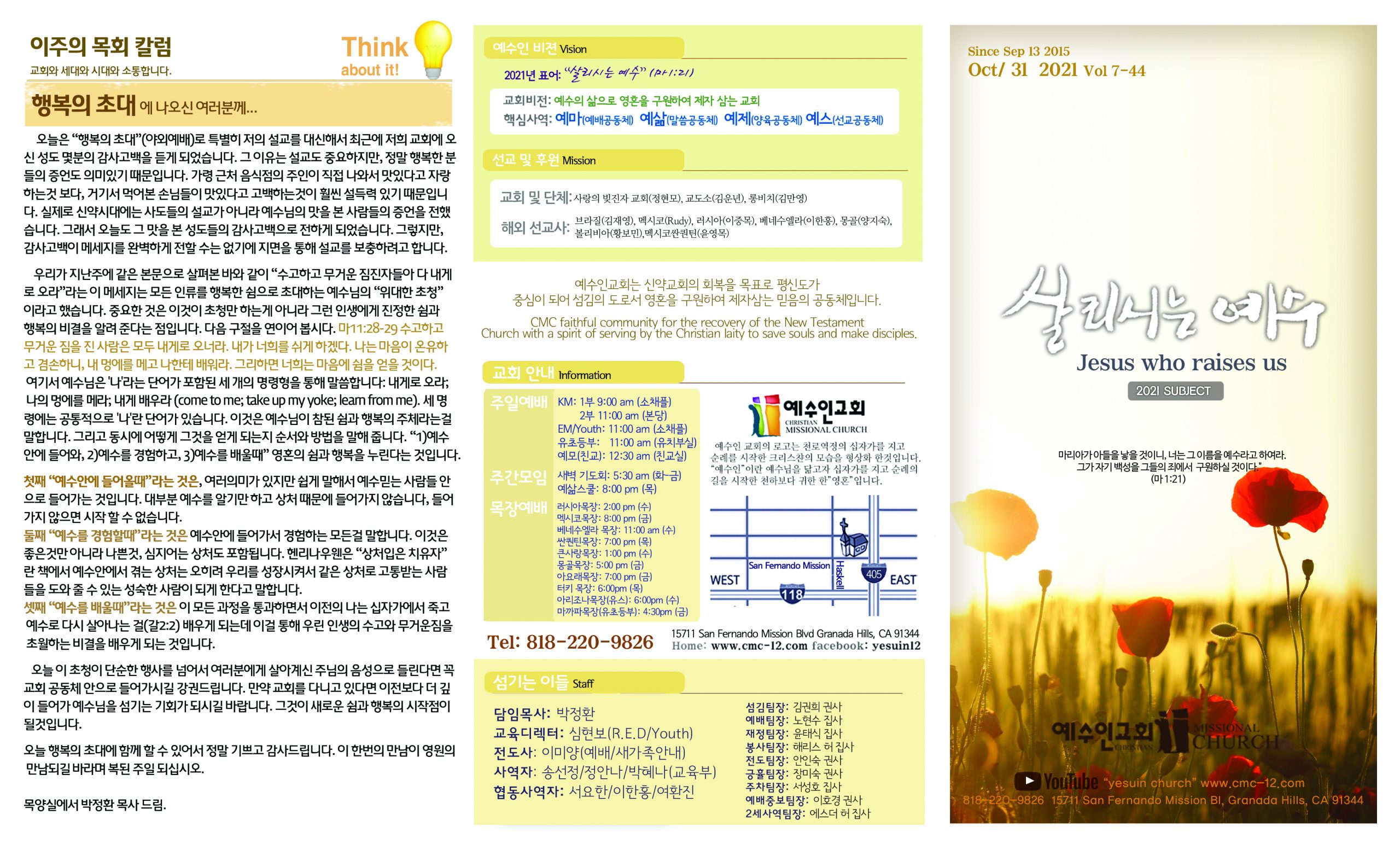 10/31 주보 By 예수인교회 Posted 10/31/2021 In 주보 0 0 예수인교회 Recent Posts0405/주보Church of Jesus 13 요 3:16/ 딤전 1:13-16 “십자가의 두 음성”03/29 주보Church of Jesus 12 베드로전서 5:1-4 “이렇게 양 떼를 돌보라.” Leave a Comment 응답 취소 다음 번 댓글 작성을 위해 이 브라우저에 이름, 이메일, 그리고 웹사이트를 저장합니다.