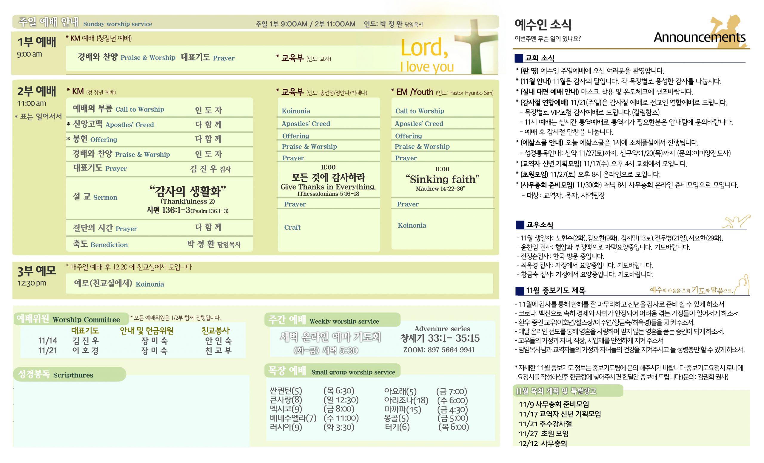 11/14 주보 By 예수인교회 Posted 11/14/2021 In 주보 0 0 예수인교회 Recent Posts0405/주보Church of Jesus 13 요 3:16/ 딤전 1:13-16 “십자가의 두 음성”03/29 주보Church of Jesus 12 베드로전서 5:1-4 “이렇게 양 떼를 돌보라.” Leave a Comment 응답 취소 다음 번 댓글 작성을 위해 이 브라우저에 이름, 이메일, 그리고 웹사이트를 저장합니다.