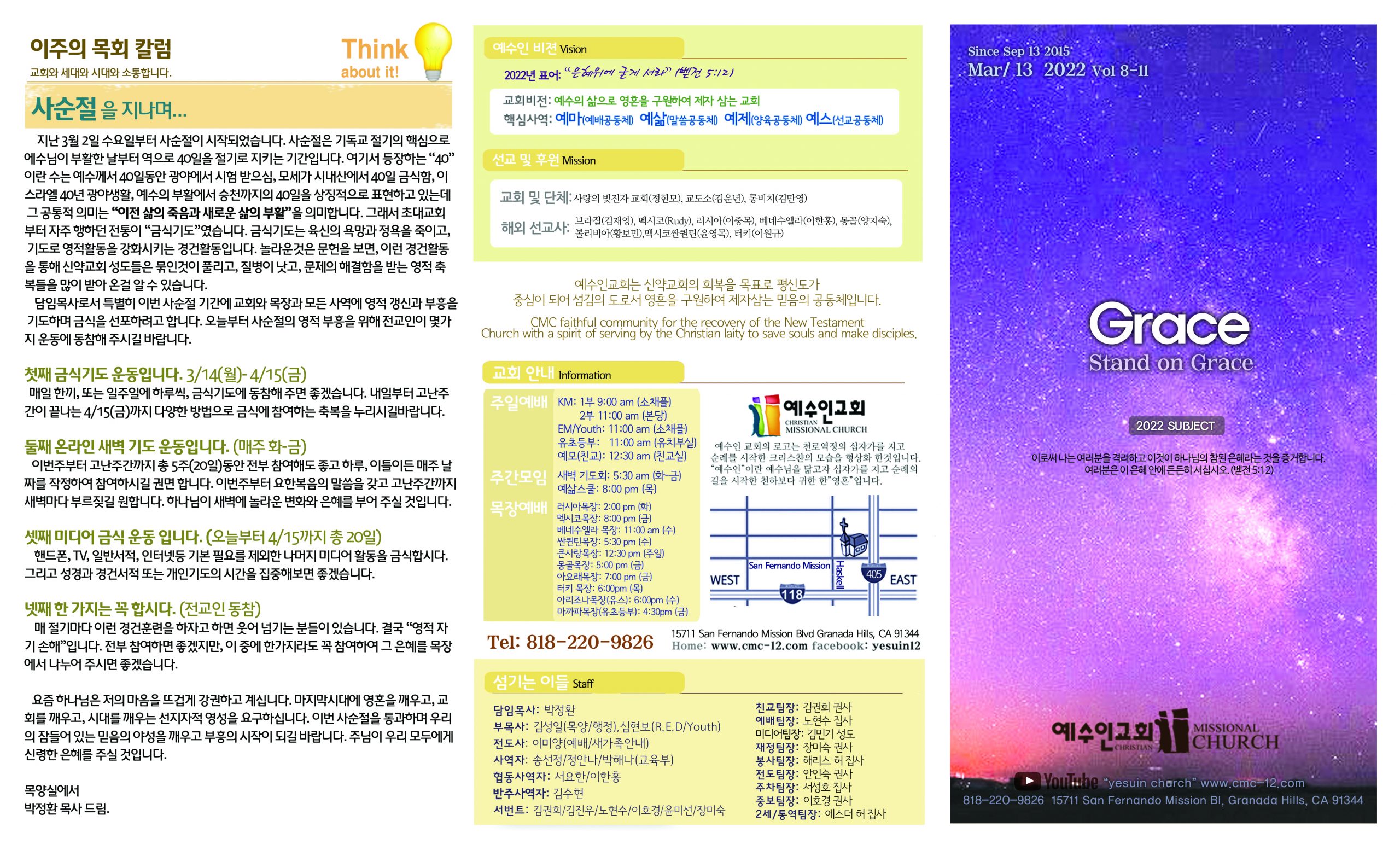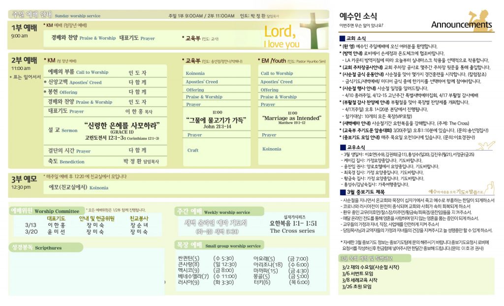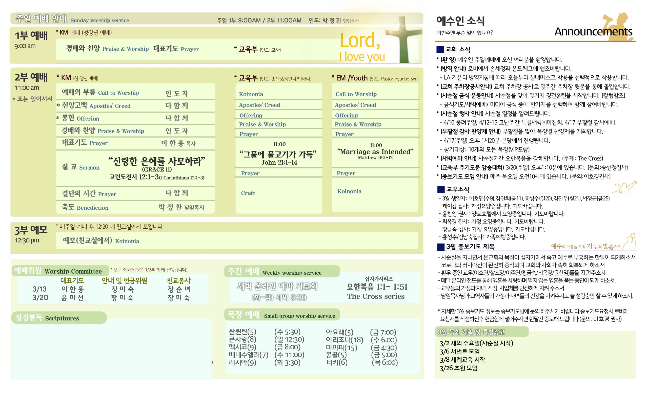 3/13 주보 By 예수인교회 Posted 03/13/2022 In 주보 0 0 예수인교회 Recent PostsChurch of Jesus 16 마태복음(Matthew) 11:11 “예수님이 크게 보시는 사람” Whom Jesus Sees as Great.04/19 주보Church of Jesus 15 누가복음(Luke) 9:57-62 “제자됨의 조건” The Requirements for Discipleship.04/12 주보 Leave a Comment 응답 취소 다음 번 댓글 작성을 위해 이 브라우저에 이름, 이메일, 그리고 웹사이트를 저장합니다.
