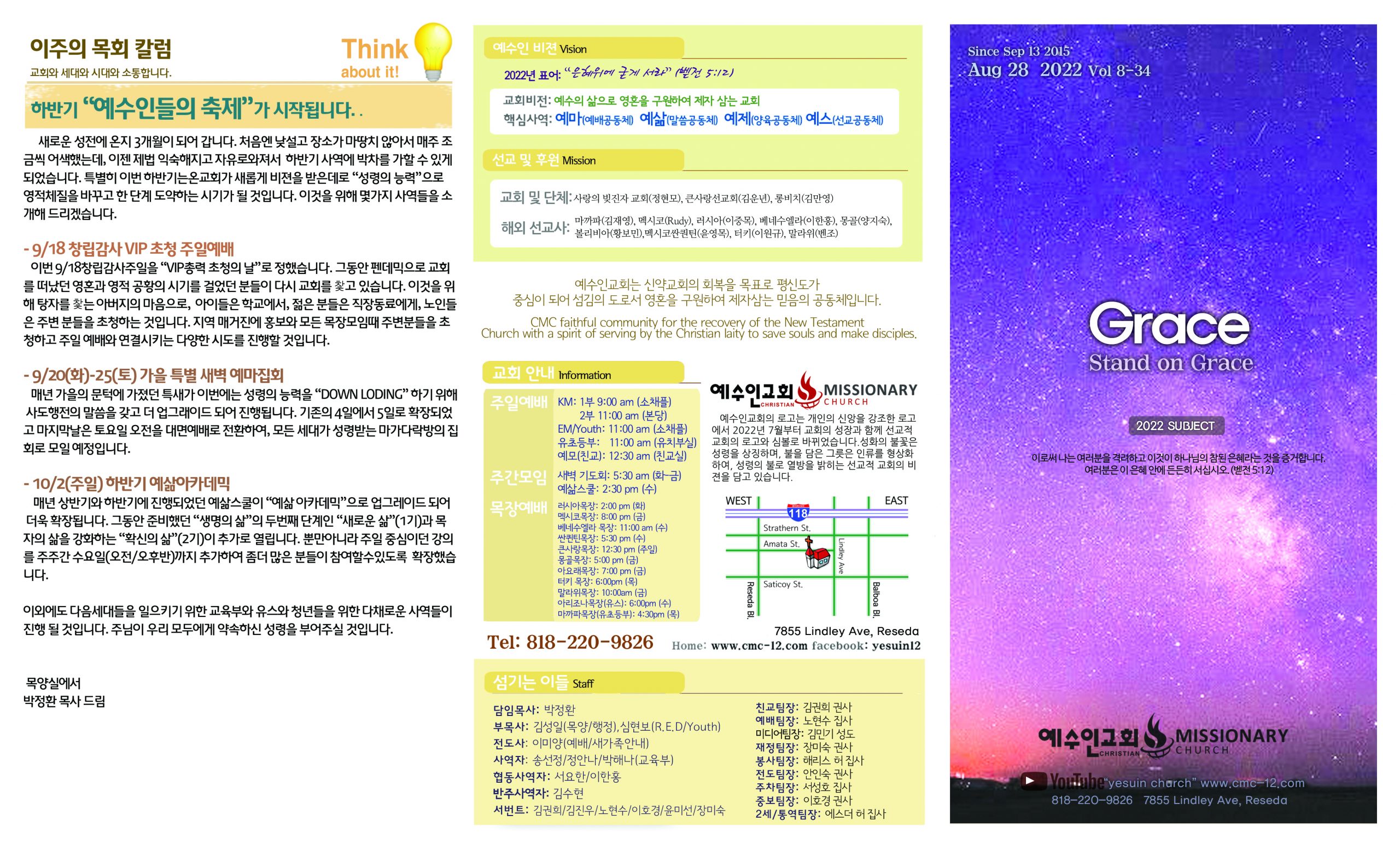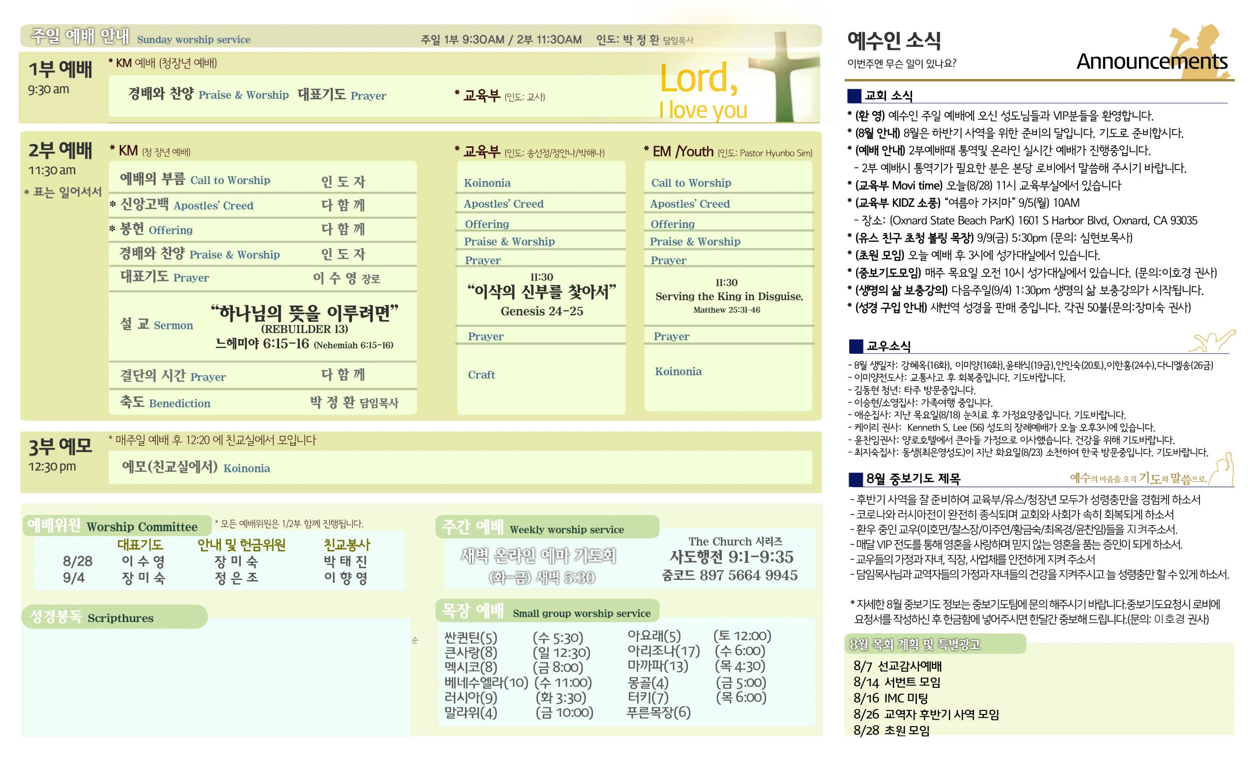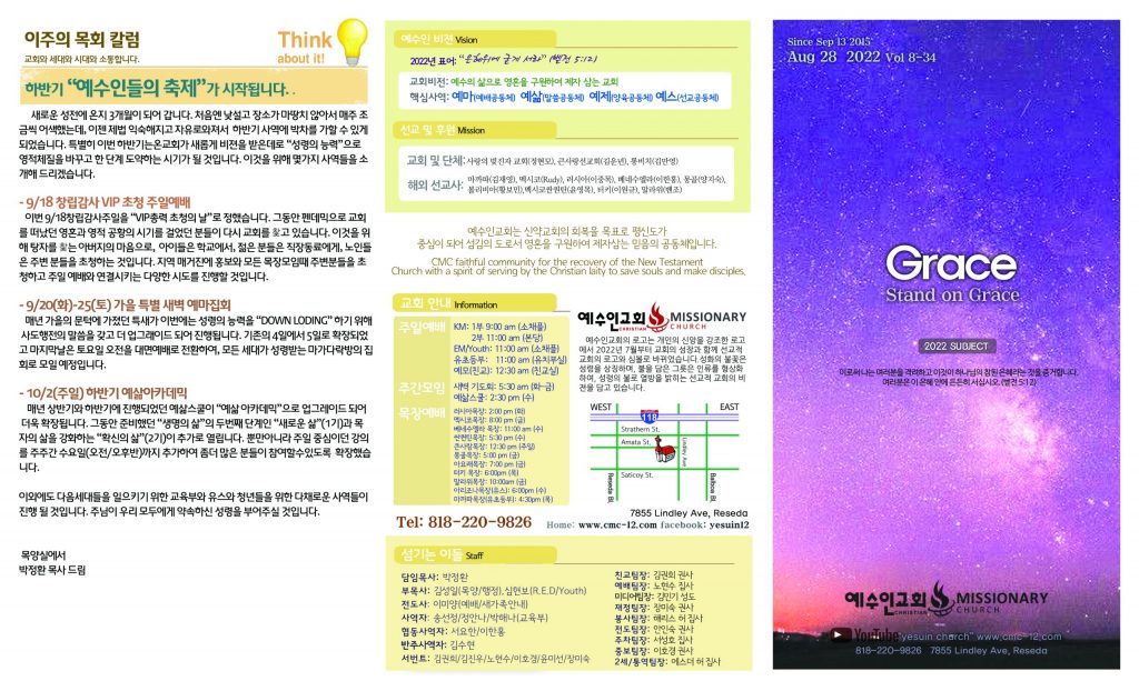 8/28 주보 By 예수인교회 Posted 08/28/2022 In 주보 0 0 예수인교회 Recent Posts0426 주보Church of Jesus 16 마태복음(Matthew) 11:11 “예수님이 크게 보시는 사람” Whom Jesus Sees as Great.04/19 주보Church of Jesus 15 누가복음(Luke) 9:57-62 “제자됨의 조건” The Requirements for Discipleship. Leave a Comment 응답 취소 다음 번 댓글 작성을 위해 이 브라우저에 이름, 이메일, 그리고 웹사이트를 저장합니다.
