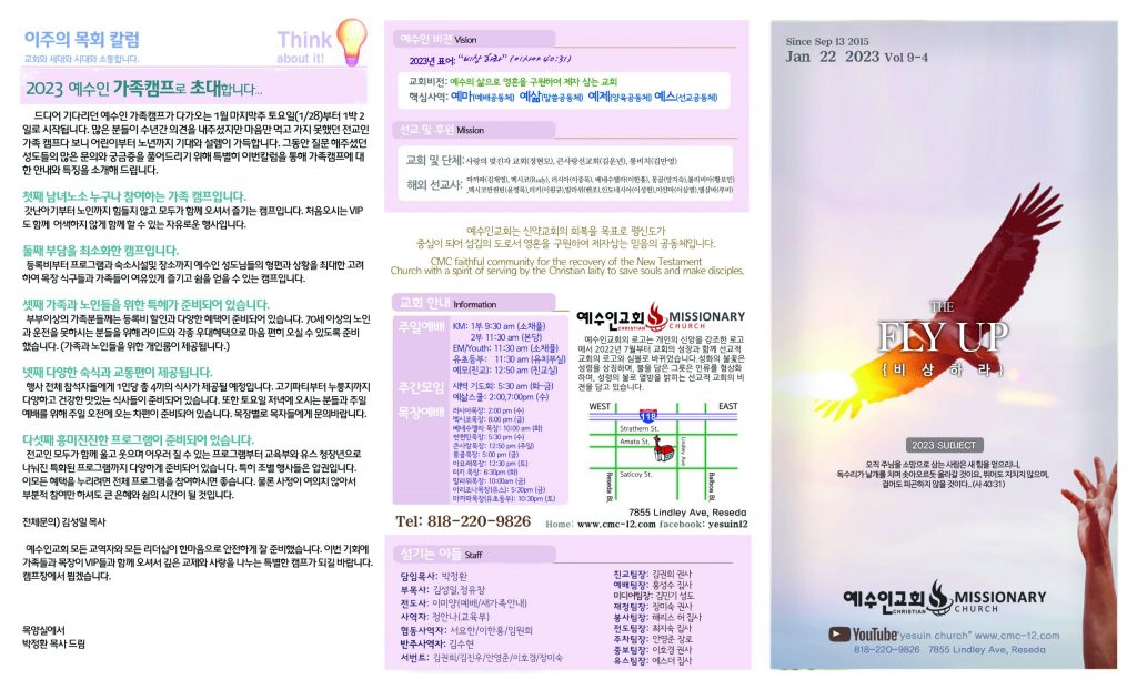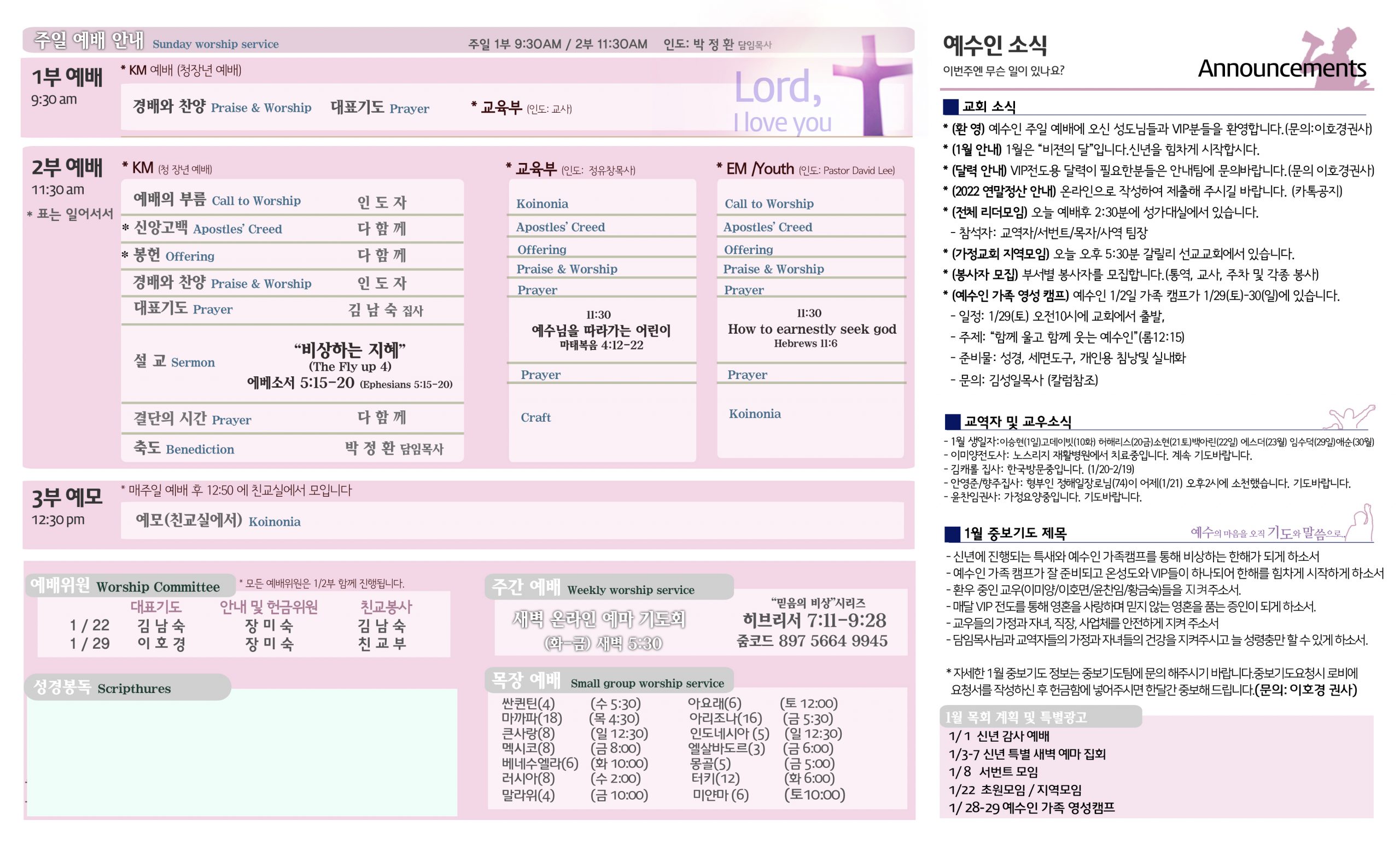 1/22 주보 By 예수인교회 Posted 01/22/2023 In 주보 0 0 예수인교회 Recent PostsChurch of Jesus 16 마태복음(Matthew) 11:11 “예수님이 크게 보시는 사람” Whom Jesus Sees as Great.04/19 주보Church of Jesus 15 누가복음(Luke) 9:57-62 “제자됨의 조건” The Requirements for Discipleship.04/12 주보 Leave a Comment 응답 취소 다음 번 댓글 작성을 위해 이 브라우저에 이름, 이메일, 그리고 웹사이트를 저장합니다.