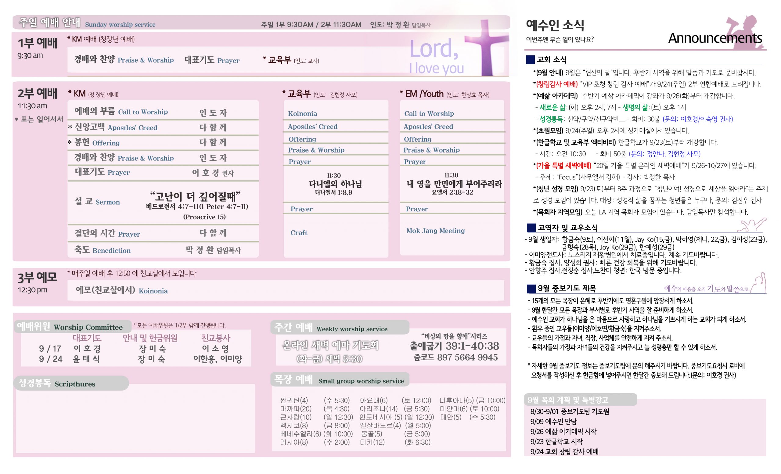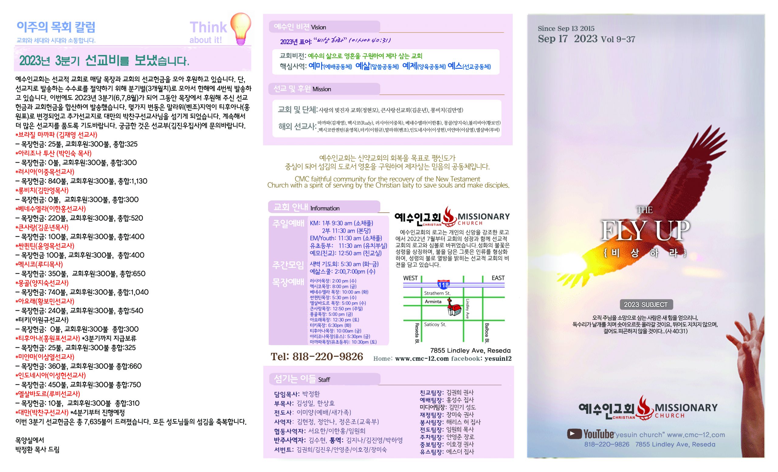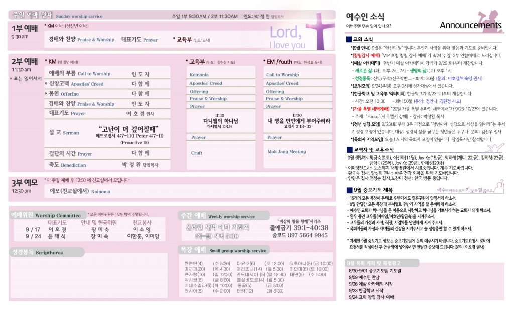 9/17 주보 By 예수인교회 Posted 09/17/2023 In 주보 0 0 예수인교회 Recent PostsChurch of Jesus 16 마태복음(Matthew) 11:11 “예수님이 크게 보시는 사람” Whom Jesus Sees as Great.04/19 주보Church of Jesus 15 누가복음(Luke) 9:57-62 “제자됨의 조건” The Requirements for Discipleship.04/12 주보 Leave a Comment 응답 취소 다음 번 댓글 작성을 위해 이 브라우저에 이름, 이메일, 그리고 웹사이트를 저장합니다.