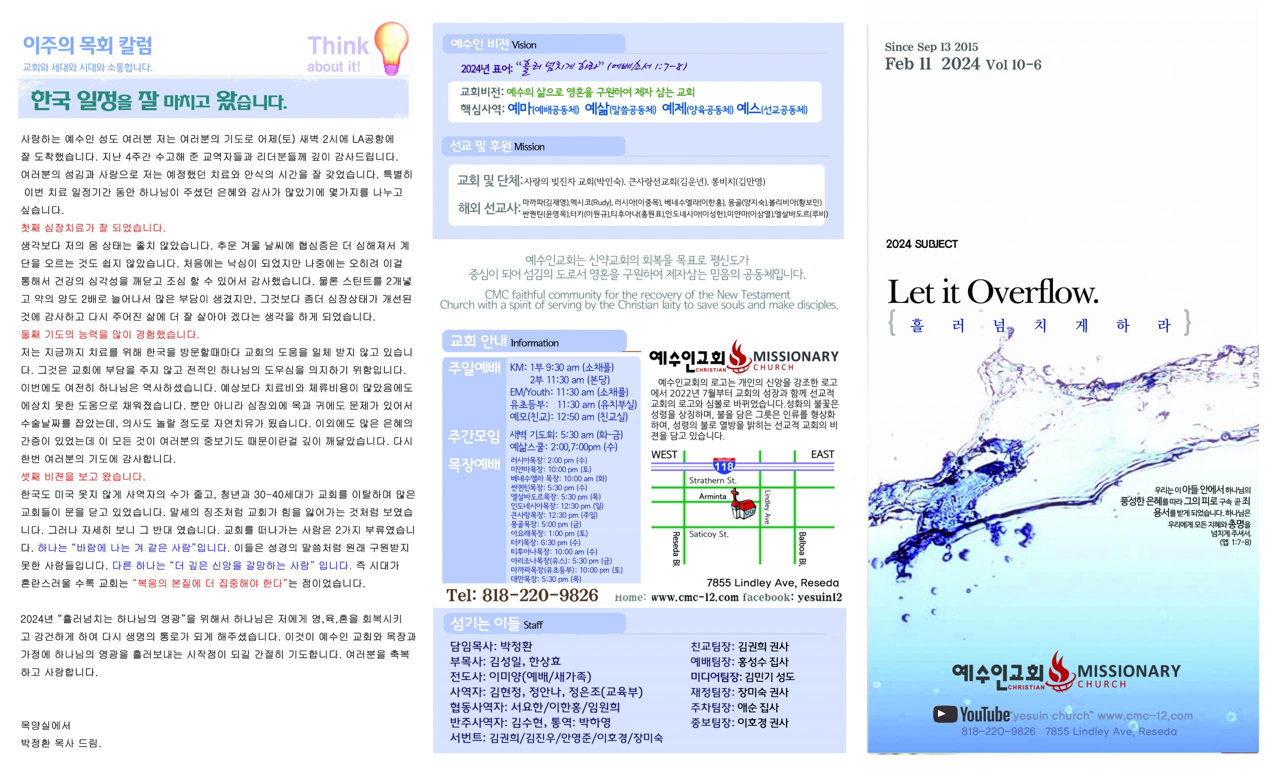 2/11 주보 By 예수인교회 Posted 02/11/2024 In 주보 0 0 예수인교회 Recent PostsChurch of Jesus 16 마태복음(Matthew) 11:11 “예수님이 크게 보시는 사람” Whom Jesus Sees as Great.04/19 주보Church of Jesus 15 누가복음(Luke) 9:57-62 “제자됨의 조건” The Requirements for Discipleship.04/12 주보 Leave a Comment 응답 취소 다음 번 댓글 작성을 위해 이 브라우저에 이름, 이메일, 그리고 웹사이트를 저장합니다.