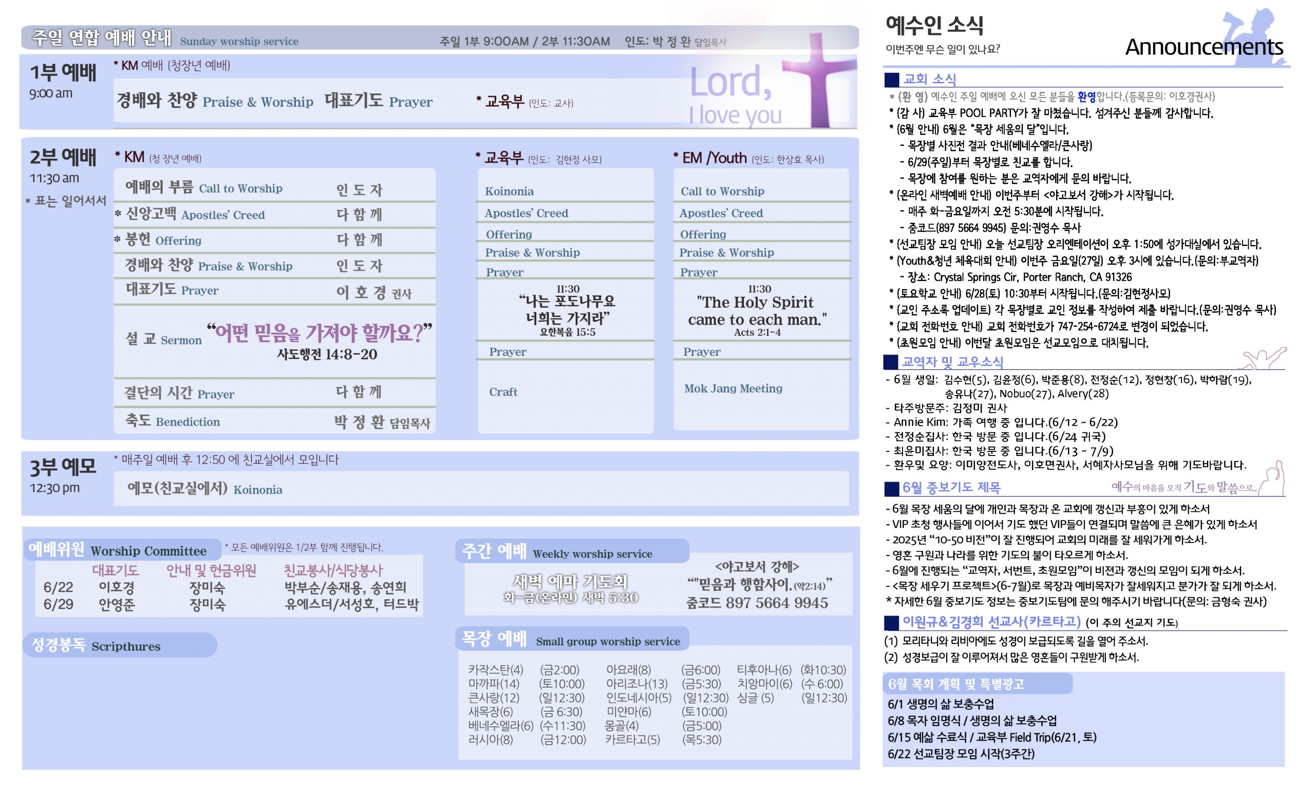 6/22 주보 By 예수인교회 Posted 06/22/2025 In 주보 0 0 예수인교회 Recent Posts10/12 주보Annointing 60 행 18:12-23 성장하게 만드는 탈진가을 특새 메세지 아가서 6: 1-10 일어나 함께가는 사랑10/5 주보 Leave a Comment 응답 취소 다음 번 댓글 작성을 위해 이 브라우저에 이름, 이메일, 그리고 웹사이트를 저장합니다.
