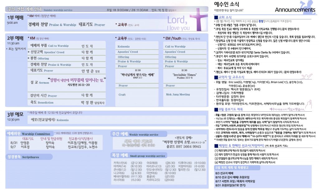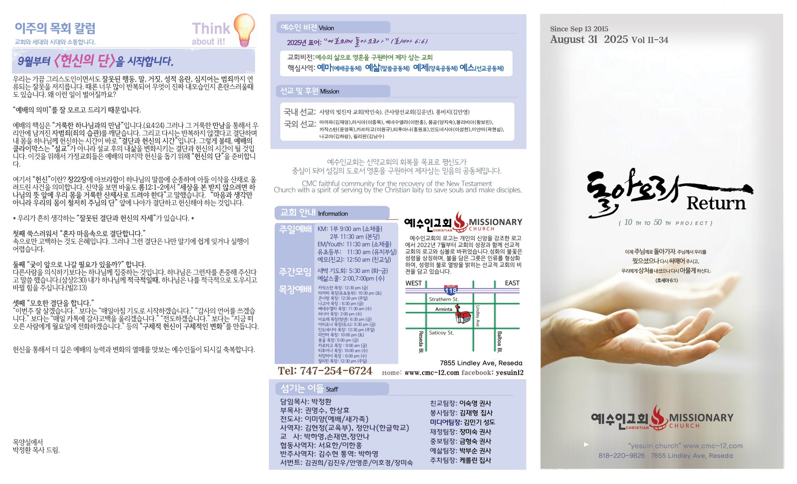 8/31 주보 By 예수인교회 Posted 08/31/2025 In 주보 0 0 예수인교회 Recent Posts10/12 주보Annointing 60 행 18:12-23 성장하게 만드는 탈진가을 특새 메세지 아가서 6: 1-10 일어나 함께가는 사랑10/5 주보 Leave a Comment 응답 취소 다음 번 댓글 작성을 위해 이 브라우저에 이름, 이메일, 그리고 웹사이트를 저장합니다.